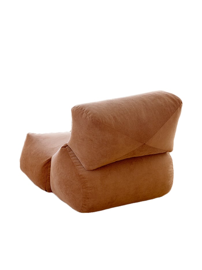 Unlike traditional bean bag designs, this sofa features a clean and lightweight shape created through three sections of different upholstery, while also serving both seating and lounging functions. It has a full yet light structure, making it easy to move and portable.