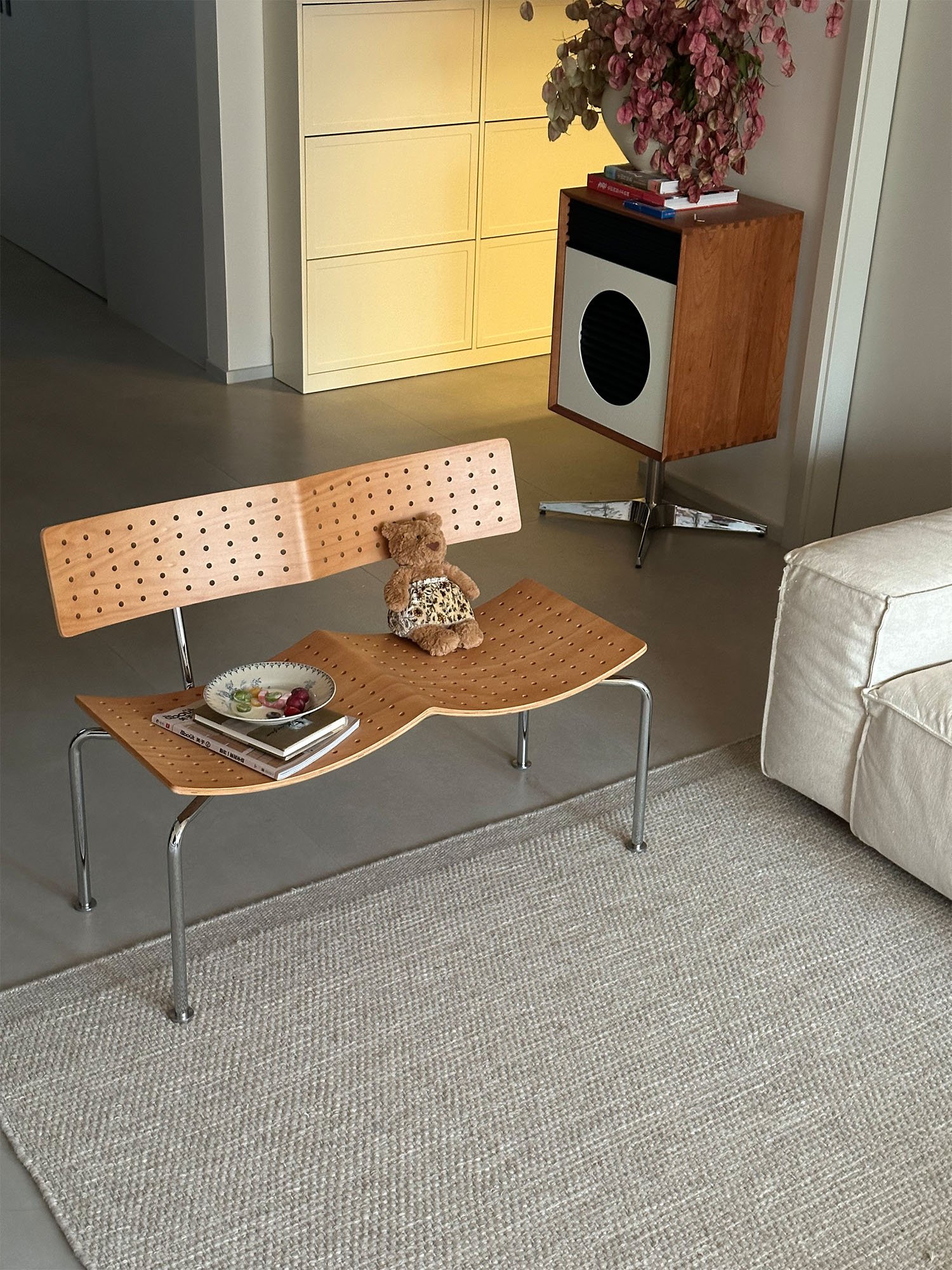 In homage to Magnus Olesen’s sofastole, a 1937 design, the designer ingeniously draws inspiration from the undulating shapes of ocean waves, integrating them into the form of the loveseat to share companionship in a fun and intimate manner. The soft curves bestow a unique sense of dynamic beauty upon the loveseat, while also giving it an appearance reminiscent of wings ready to take flight.
