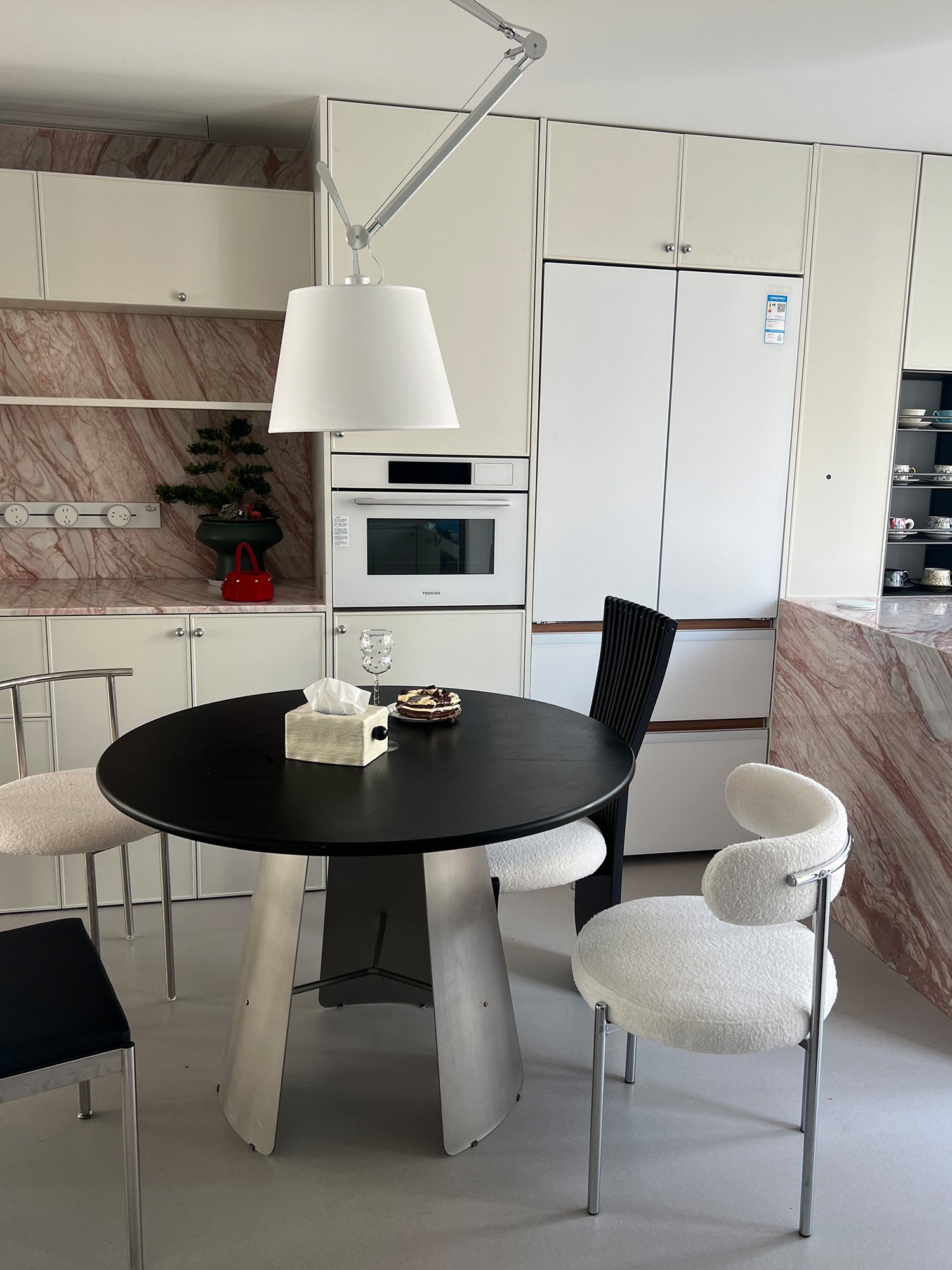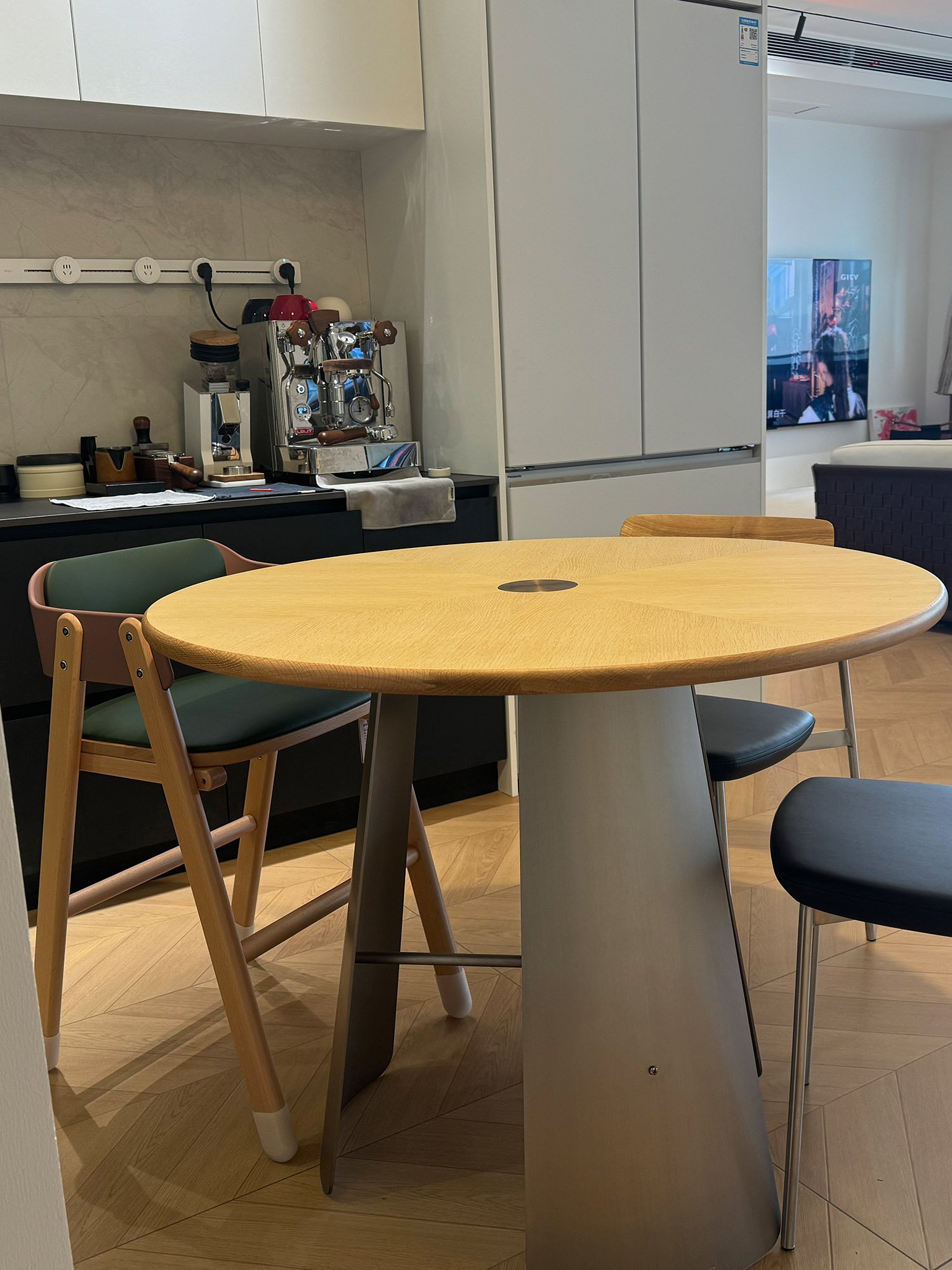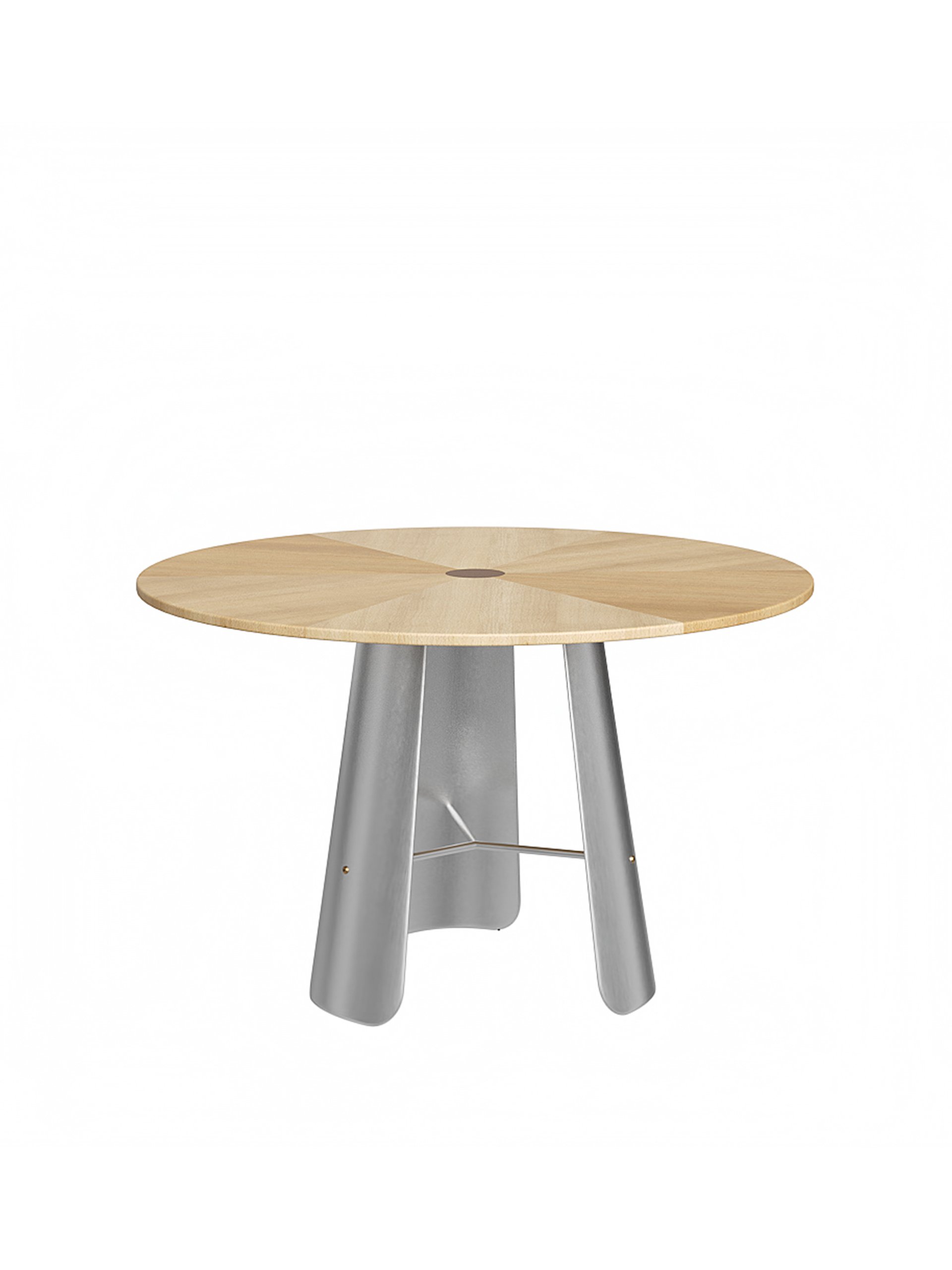 The base has been improved to a brushed stainless steel finish, and the three table legs are fully detachable, making long-distance shipping easier.
