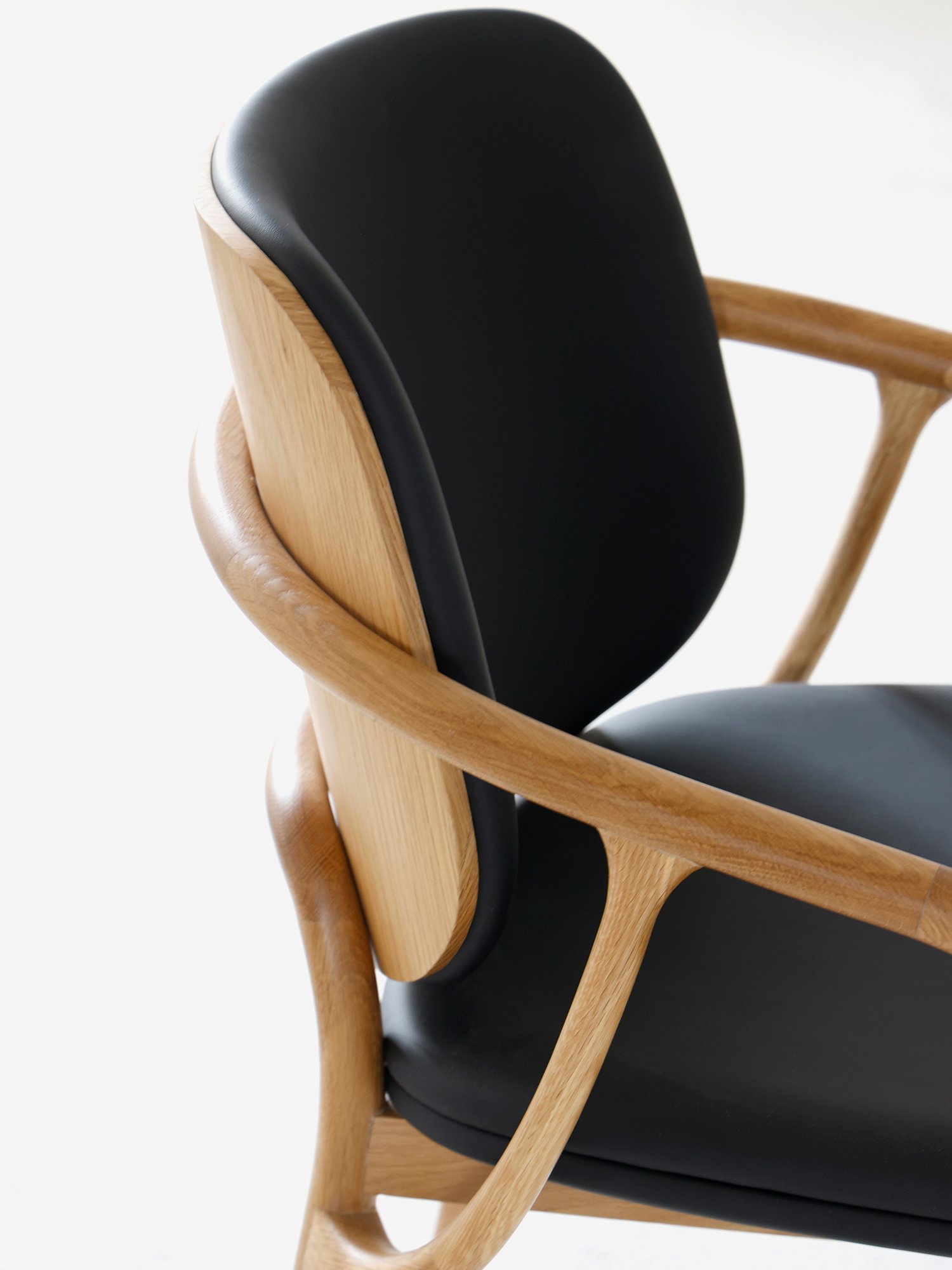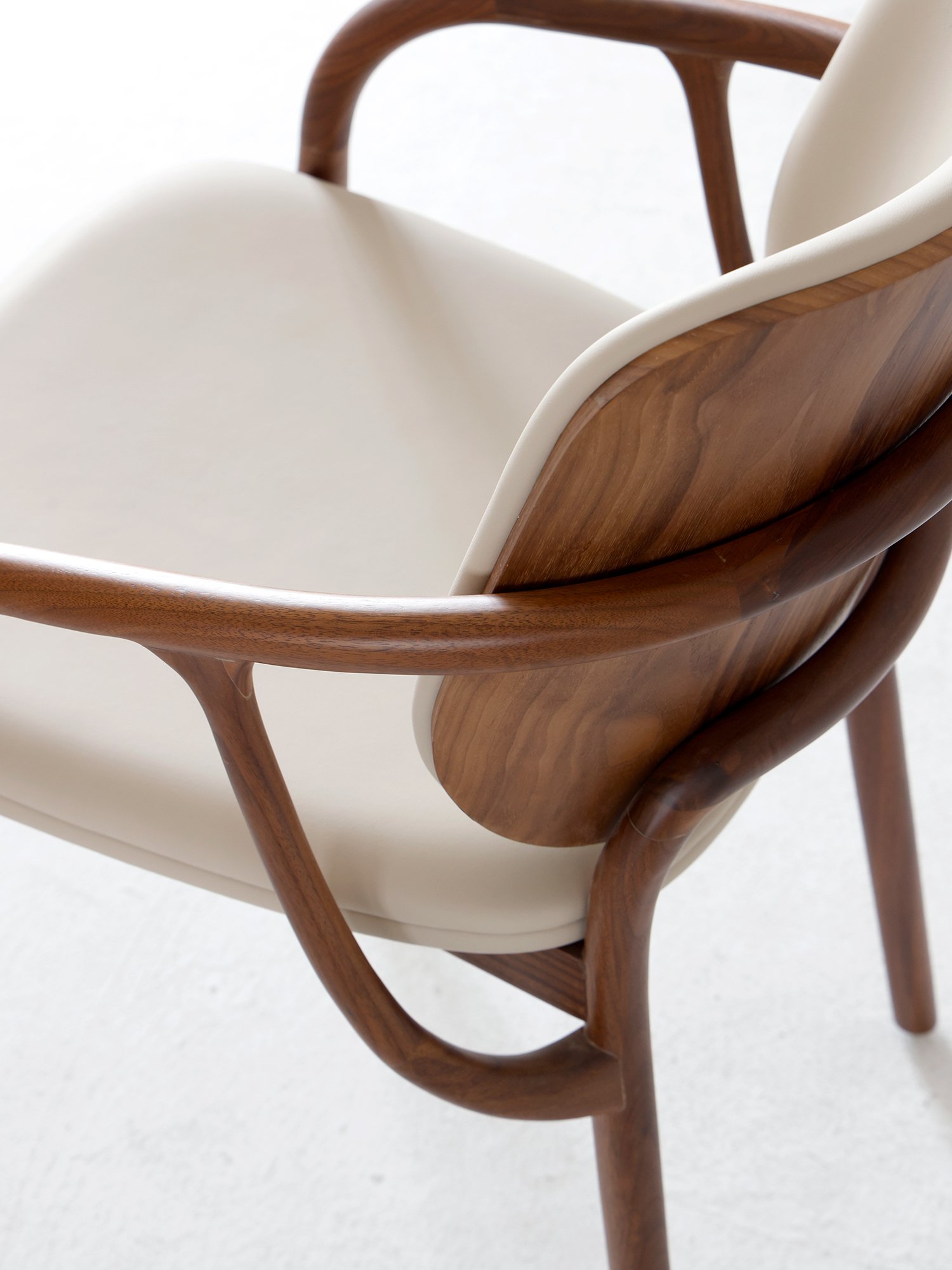 This is a chair with a simple yet exceptionally comfortable design. The solid wood is expertly bent to create elegant curves, resulting in a clean and sophisticated look. The backrest follows the natural contours of the human body, providing perfect support and a snug embrace.