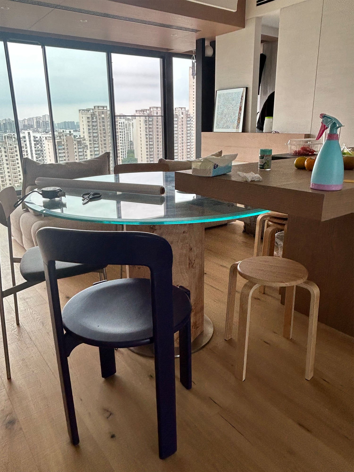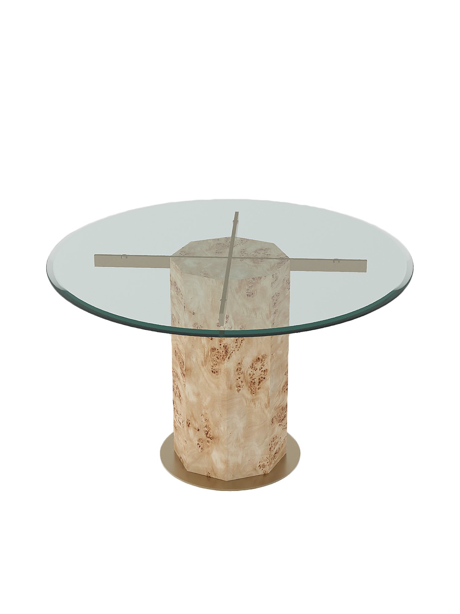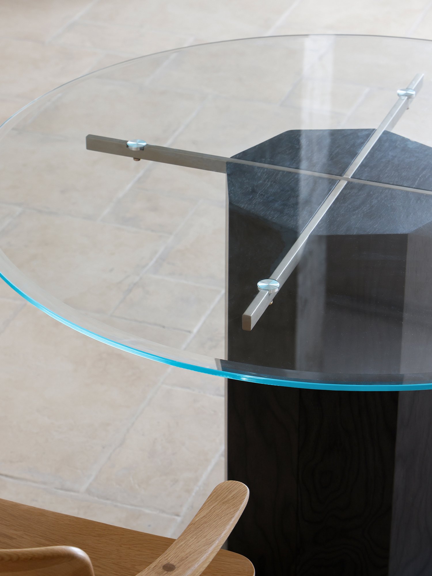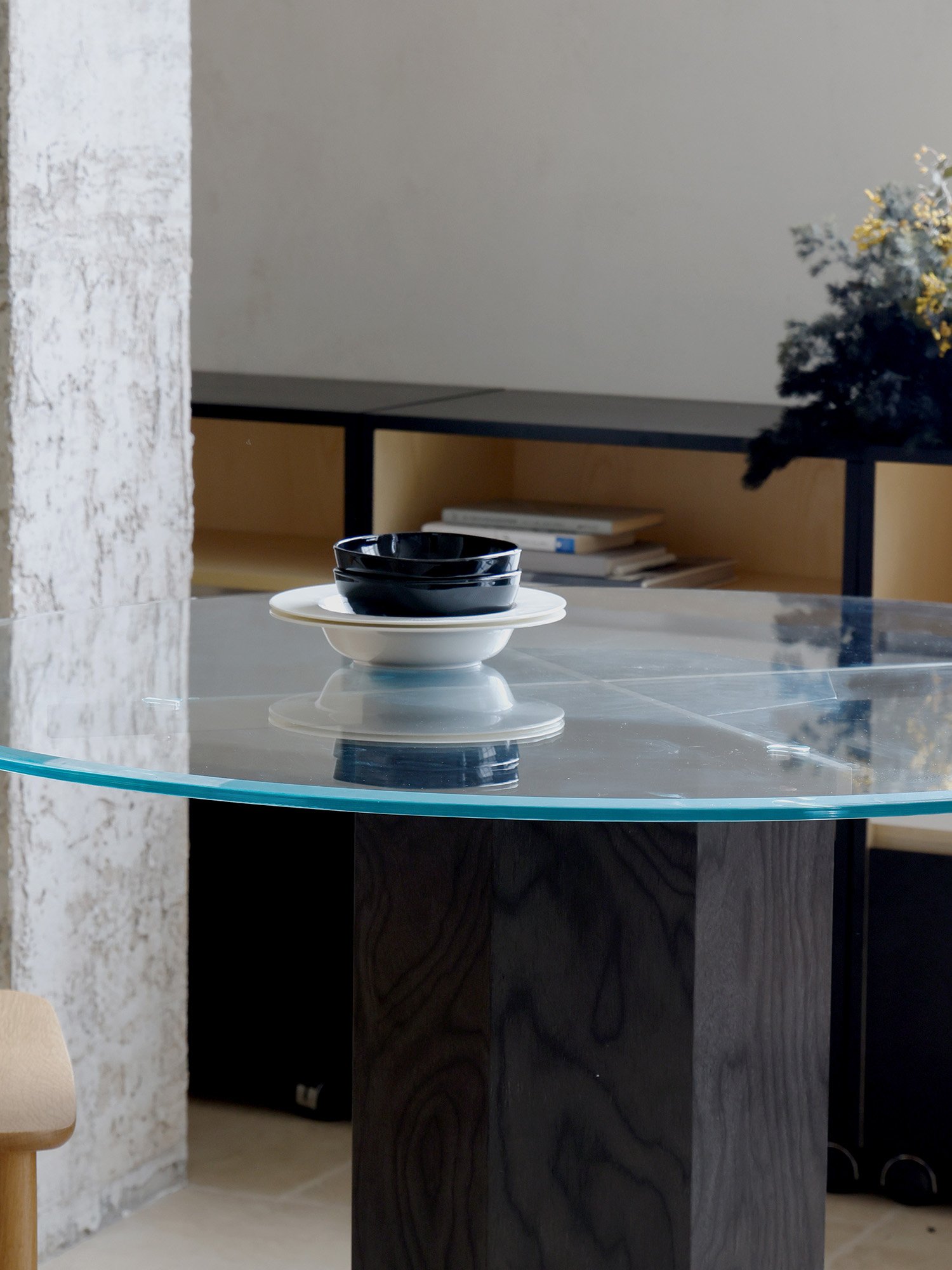 Named after the mathematician Ptolemy, this design blends science with geometric aesthetics. The round table features an ultra-clear glass tabletop, ensuring purity and transparency, allowing us to observe the intricate details of the structure.