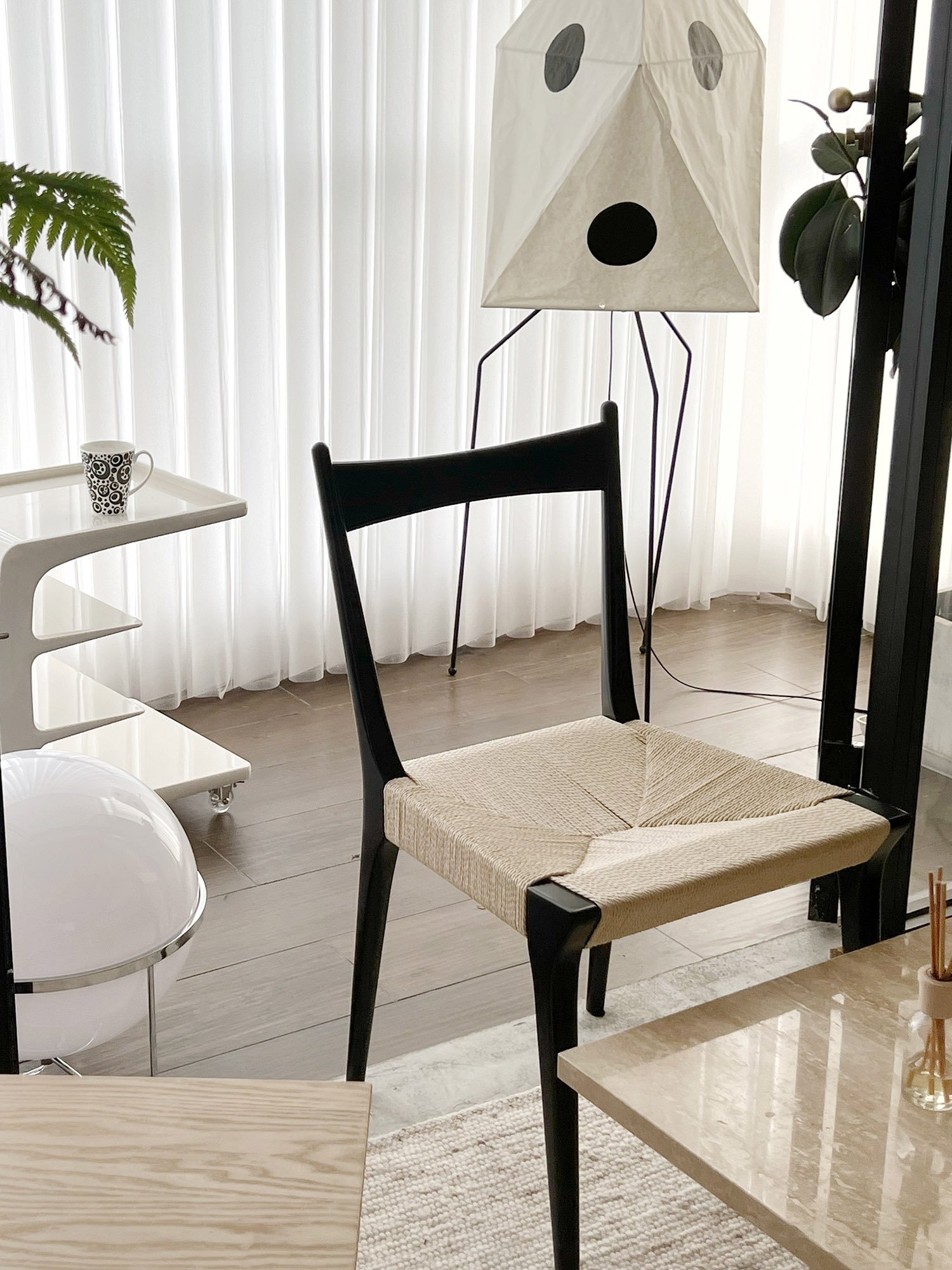 The whole frame is beech solid wood mortise and tenon structure, strong and durable. Dabao solid color paint coating, strong scratch resistance. Cowhide paper rope braided seat surface, with good tear strength, flexible and strong, water resistance is not easy to deform.