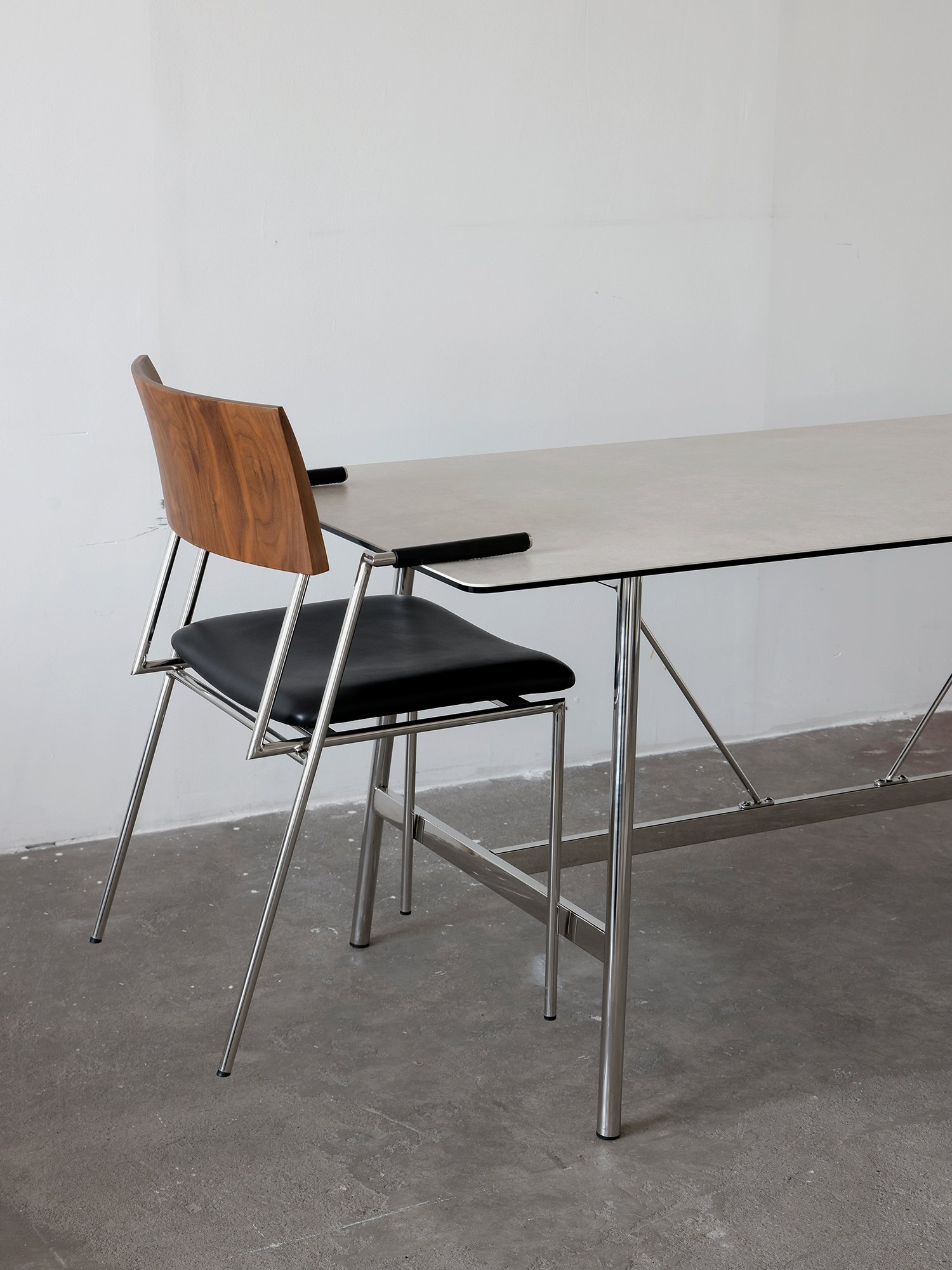 The Suga Dining Chair embodies “Comfort & Style” as its core concept. The solid wood backrest brings natural warmth, while the stainless steel legs accentuate modern minimalism. Featuring top-grain leather seat cushions with refined texture and enduring quality, it showcases contemporary design’s perfect balance between functionality and aesthetics.