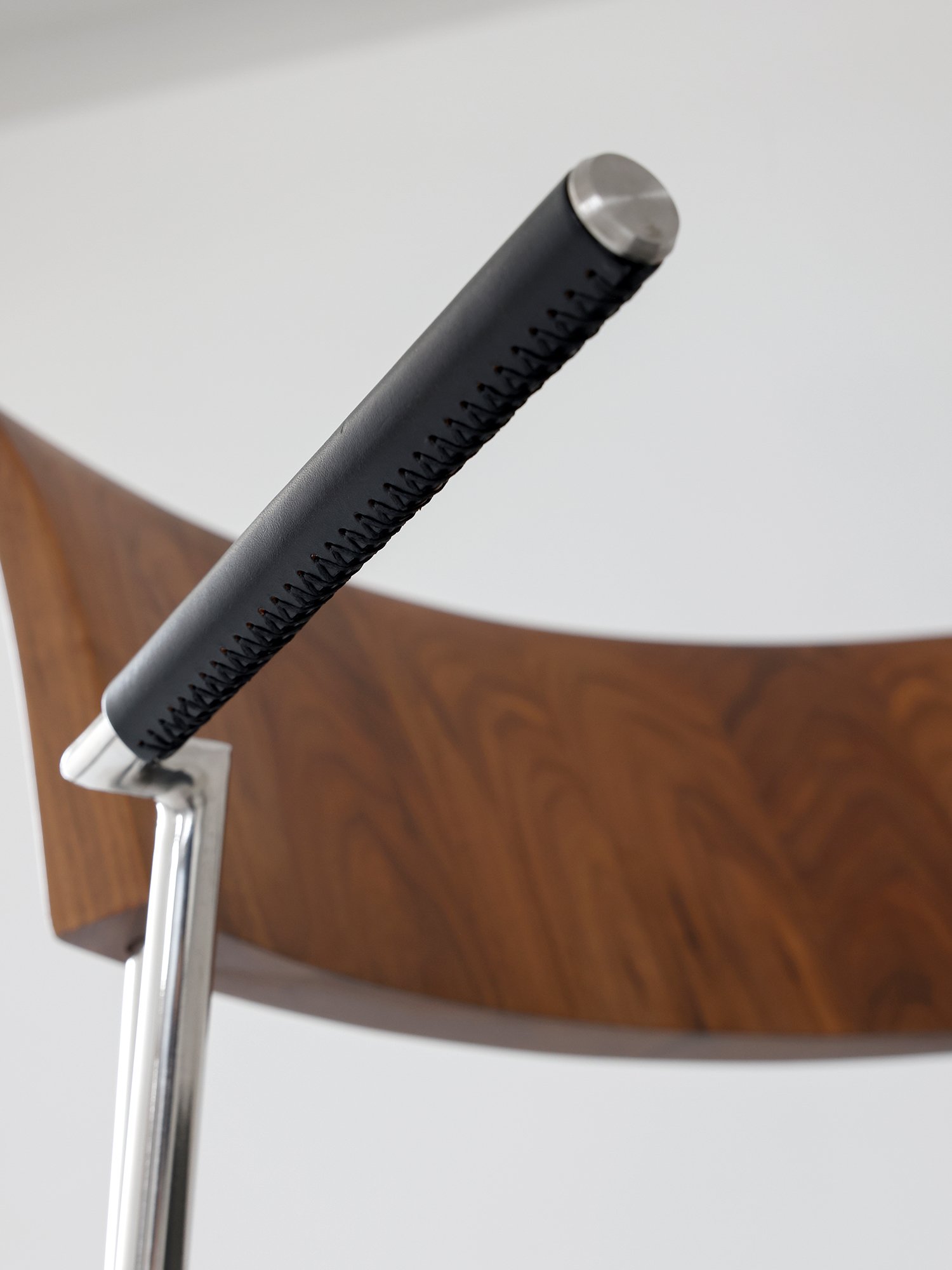 Stainless Steel Frame + Solid Wood Backrest + Genuine Leather Seat Cushion